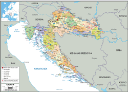 This wall map, the Croatia Political Wall Map, was created with state-of-the-art printing technology, using attractive colors and easy-to-read text. This map is not available in any store and is ideally suited for business or light reference use.