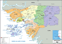 This wall map, the Guinea Bissau Political Wall Map, was created with state-of-the-art printing technology, using attractive colors and easy-to-read text. This map is not available in any store and is ideally suited for business or light reference use.