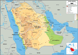 This wall map, the Saudi Arabia Physical Wall Map, was created with state-of-the-art printing technology, using attractive colors and easy-to-read text. This map is not available in any store and is ideally suited for business or light reference use.