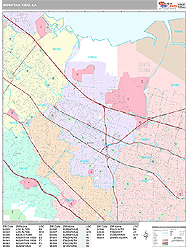 The Premium Style Wall Map is an attractive display with complete map detail. It is an ideal choice for applications that benefit from both a colorful display and full reference information. The Premium Style Wall Map features streets and highways with maximum streets based upon map size, as well as colorful shadings of populated places.