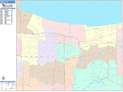 The ColorCAST style Wall Map is a multi-colored display that shades each geographic area with its own background color. It is an ideal choice for applications that benefit from quickly and easily distinguishing one County or Zip Code from the others. The ColorCAST Style Wall Map features streets and highways with maximum streets based upon map size, as well as distinct geographic color shading.