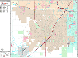 The Premium Style Wall Map is an attractive display with complete map detail. It is an ideal choice for applications that benefit from both a colorful display and full reference information. The Premium Style Wall Map features streets and highways with maximum streets based upon map size, as well as colorful shadings of populated places.