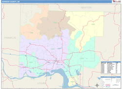 The ColorCAST style Wall Map is a multi-colored display that shades each geographic area with its own background color. It is an ideal choice for applications that benefit from quickly and easily distinguishing one County or Zip Code from the others. The ColorCAST Style Wall Map features streets and highways with maximum streets based upon map size, as well as distinct geographic color shading.