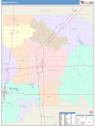 The ColorCAST style Wall Map is a multi-colored display that shades each geographic area with its own background color. It is an ideal choice for applications that benefit from quickly and easily distinguishing one County or Zip Code from the others. The ColorCAST Style Wall Map features streets and highways with maximum streets based upon map size, as well as distinct geographic color shading.