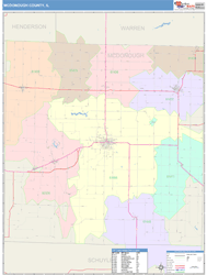 The ColorCAST style Wall Map is a multi-colored display that shades each geographic area with its own background color. It is an ideal choice for applications that benefit from quickly and easily distinguishing one County or Zip Code from the others. The ColorCAST Style Wall Map features streets and highways with maximum streets based upon map size, as well as distinct geographic color shading.
