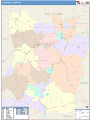 The ColorCAST style Wall Map is a multi-colored display that shades each geographic area with its own background color. It is an ideal choice for applications that benefit from quickly and easily distinguishing one County or Zip Code from the others. The ColorCAST Style Wall Map features streets and highways with maximum streets based upon map size, as well as distinct geographic color shading.