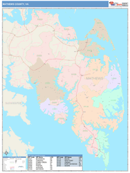 The ColorCAST style Wall Map is a multi-colored display that shades each geographic area with its own background color. It is an ideal choice for applications that benefit from quickly and easily distinguishing one County or Zip Code from the others. The ColorCAST Style Wall Map features streets and highways with maximum streets based upon map size, as well as distinct geographic color shading.