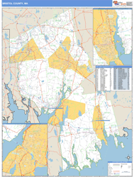 Bristol County, MA Wall Map Zip Code