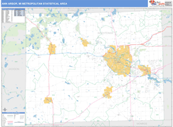 The Basic Style Wall Map is great for presentation, offering traditional colors with standard map detail. It is an excellent choice for applications that benefit from a professional look and basic map reference information. The Basic Style Wall Map features streets and highways with maximum streets based upon map size, as well as color shadings of major populated areas.